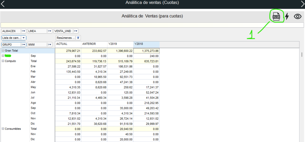 Siguiendo con el ejemplo, puedes quitar el GRUPO: Cómputo y verás que es el responsable de tu pico de ventas en 2021, y las posibilidades de obtener información son a tu necesidad y autoservicio.