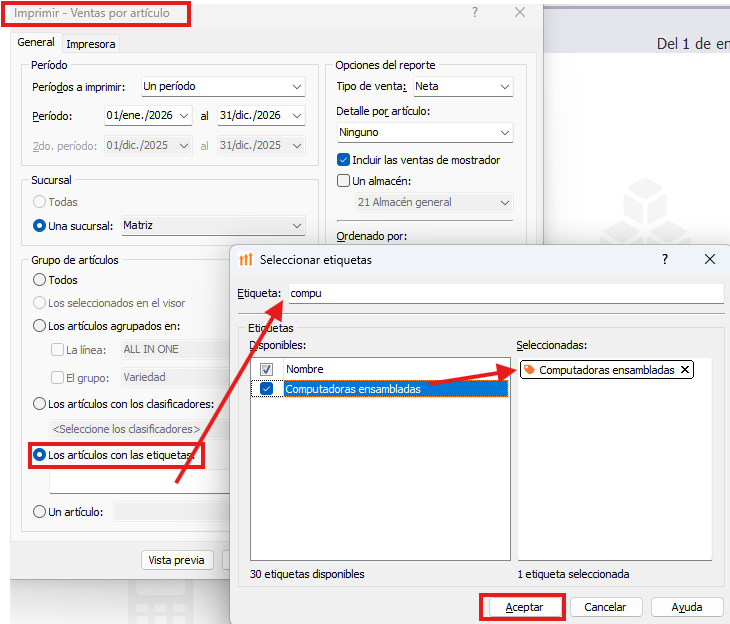 Cómo generar reportes con artículos que tengan asignadas ciertas etiquetas en Microsip