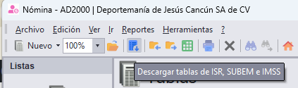 Para descargar dichas tablas, se incluye el botón «Descargar tablas de ISR, SUBEM e IMSS» en la barra de iconos del módulo de Nómina microsip.